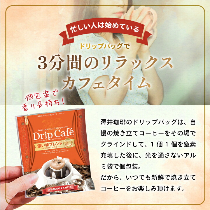 送料無料 ドリップバッグ コーヒー 珈琲 "芯まで焙煎。濃厚な味わいが毎日を満たすドリップパック" 澤井珈琲 ドリップコーヒー 濃い味ブレンド 50袋 コクが深い 苦味しっかり 飲みごたえ 【RD】 【TS】