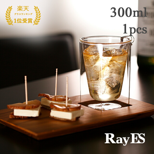 ダブルウォールグラス RayES/レイエス RDS-002 300ml [1個入・単品] グラス ハイボール ビール 焼酎 ロック ウィスキー おしゃれ スクエア デザイン耐熱 二層 保冷 保温 タンブラー マグ ギフト プレゼント ギフト ランキング1位