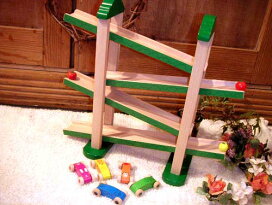 ダイワ ボールと車のつり橋付きスロープ〜動きと音が楽しいボールと車の木製スロープトイ!1歳頃からおすすめの吊橋ミニコースターです。