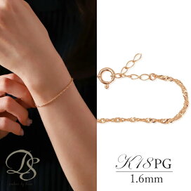\15日まで限定/2000円クーポンセール! 18金 ブレスレット k18 レディース シンプル ダブル スクリュー チェーン 1.6mm幅 k18ブレスレット ゴールド チェーン のみ だけ ブレスレットチェーン 華奢 細身 k18 18金ブレスレット 18k 14cm + 3cm 16cm + 4cm