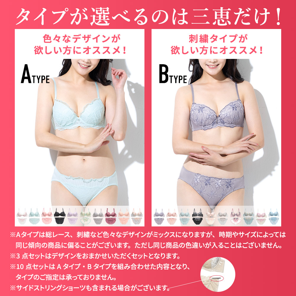 【タイムセール限定37%OFF】\選べるブラセット★3・5・10点タイプ/ブラジャー ショーツセット レディース 下着 福袋2026 盛れる A〜Fカップ 送料無料 老舗下着専門店 三恵 【3年連続楽天総合1位★累計54万セット突破】福袋2025
