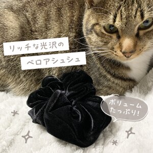 チェーンがアクセント!ベロア生地のシュシュ✨️ボリュームがあって高みえします✨️ すごく可愛くて高みえして大満足ですが、なにぶん届くのが本当に本当に本当に遅い!!笑 予約商品なのは承知の上、遅くなるのは承知の上で購入しましたが、やっぱりすぐに欲しかった!笑 ヘアカラーが今は黒で暗いヘアカラーなのでシュシュはグレーに大人っぽくしてみました!黒髪に映えてすごく可愛いです!