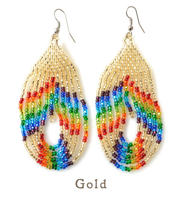 虹色ビーズがフリンジのように揺れる、大ぶりサイズのロングピアス。リゾート・エスニック・フェススタイルにもぴったり♪イヤーアクセサリー アクセサリー レディース 婦人用 雑貨小物 【メール便可04】◆ラマティ ビーズ ロングフックピアス