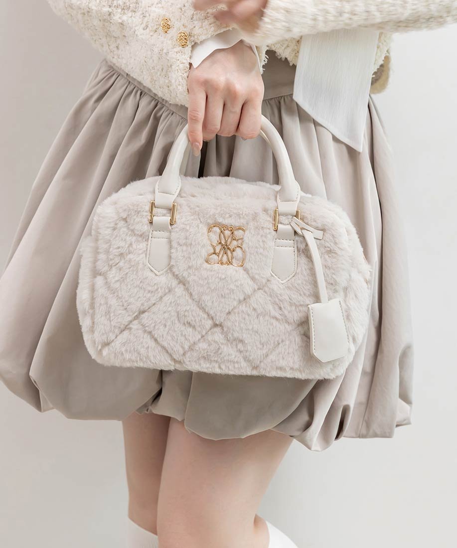 〈ファーキルティングボストンバッグ〉 ふわふわの柔らかいファーに、格子状のキルティング加工が施されたバッグです。 キレイめにも、カジュアルにも持てそうでいいですね。 ⚫︎カラー⚫︎ アイボリー グレー ベージュ