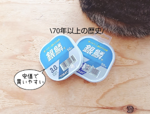 東レモノフィラメント 銀鱗50m。道糸として70年以上の歴史を持つ銀鱗。程よく伸びるナイロン糸で扱いやすい。 釣り用糸は今となれば本当に多種多様存在するので、もはや銀鱗を選ぶ必要もないのだけど、50mと言う長さが手頃で値段も安く、この号数だけ少し仕掛け作りに欲しい、そんな要求に応えてくれる。 サビキ仕掛けを自作する私には、実に様々なサイズの糸が必要になる。 その都度釣り具屋に行くのも面倒だし、いざ買いに行くと500m巻きで1700円とか、1m辺りの単価は安くてもそんなに要らんのよ。リールに巻くわけでもないし。 100均にもナイロン糸は売っているからソレでいいかと買ったものの、なんか手触りが妙。試しにこの銀鱗を買ってみて比べてみたら、100均糸が同じ号数でもとても太かった。それでいて同じ強度なら、銀鱗でいいな。海外のラインも同じく太いよね。 それにしても最近の買い物が釣具と車関係ばかりだ。そしてゲームに夢中で更新が途切れがちなRoom。