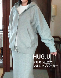 HUG.Uさんのドルマンパーカー購入✨ドルマンも可愛いけど、顔周りにフードがあって可愛い💕裏起毛でダブルジップ。これから活躍しそう🥰洗濯のコメントが気になるなぁ。。。モケモケが付くので、裏返してコロコロしてから着てまーす😊