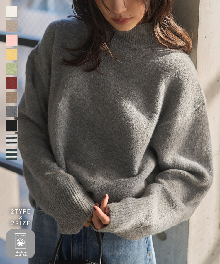 スキ! 洗える ニット レディース Vネック モックネック ハイネック ゆったり 体型カバー M L やわらかい ソフト 白 黒 Lサイズ 洗濯できる 洗濯機 洗濯機OK 大きいサイズ ウォッシャブル