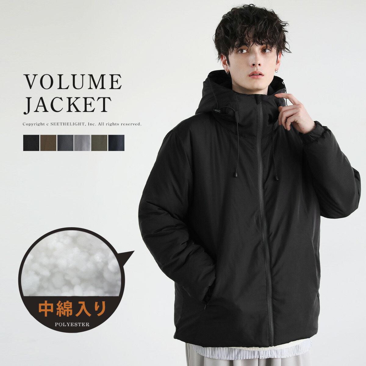 🍀 保温性とデザイン性を兼ね備えた本格アウター⭐️ 中綿ジャケット メンズ アウター 冬 冬服 防寒 軽量 保温 暖かい ボリューム ネック ハイネック フード付き