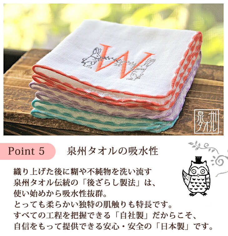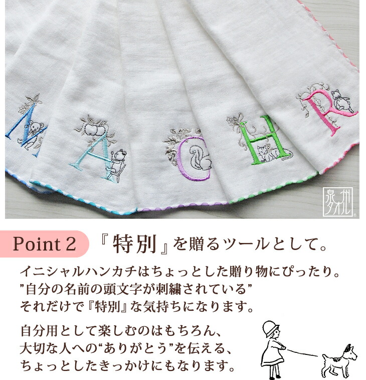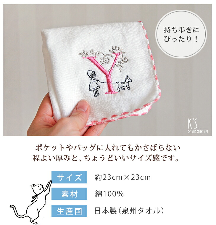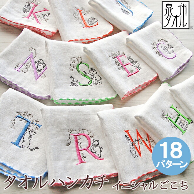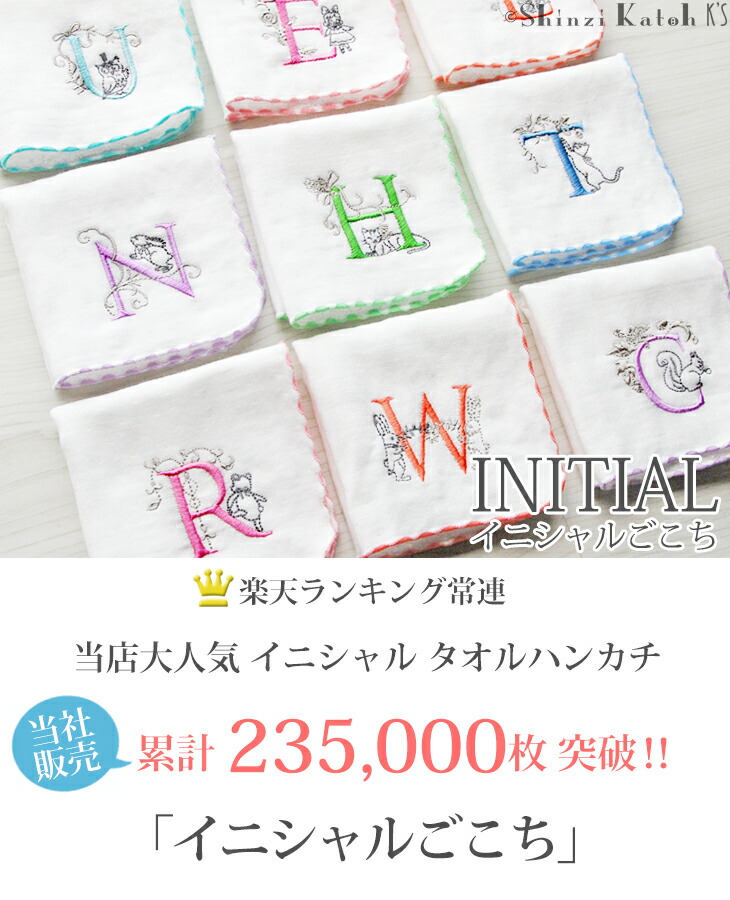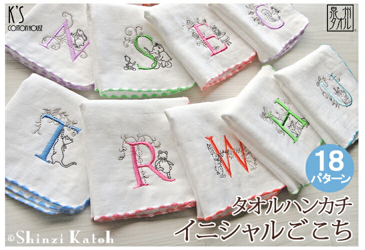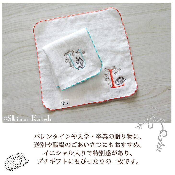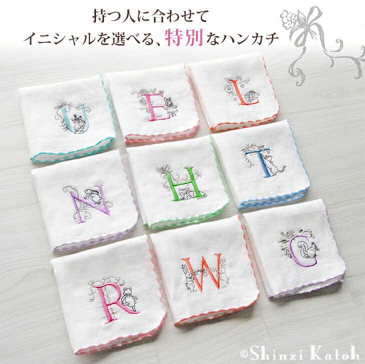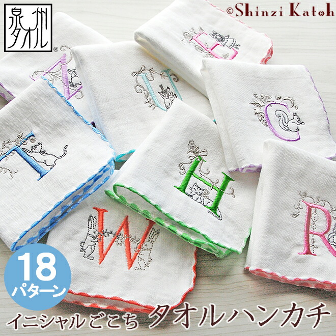 【Shinzi Katoh】『イニシャルごこち』 タオルハンカチ 約23×23cm ガーゼ 無撚糸 ガーゼハンカチ イニシャルハンカチ イニシャルタオル 日本製 国産 泉州タオル ギフト 贈り物 シンジカトウ 送別会 動物【クーポン配布中】