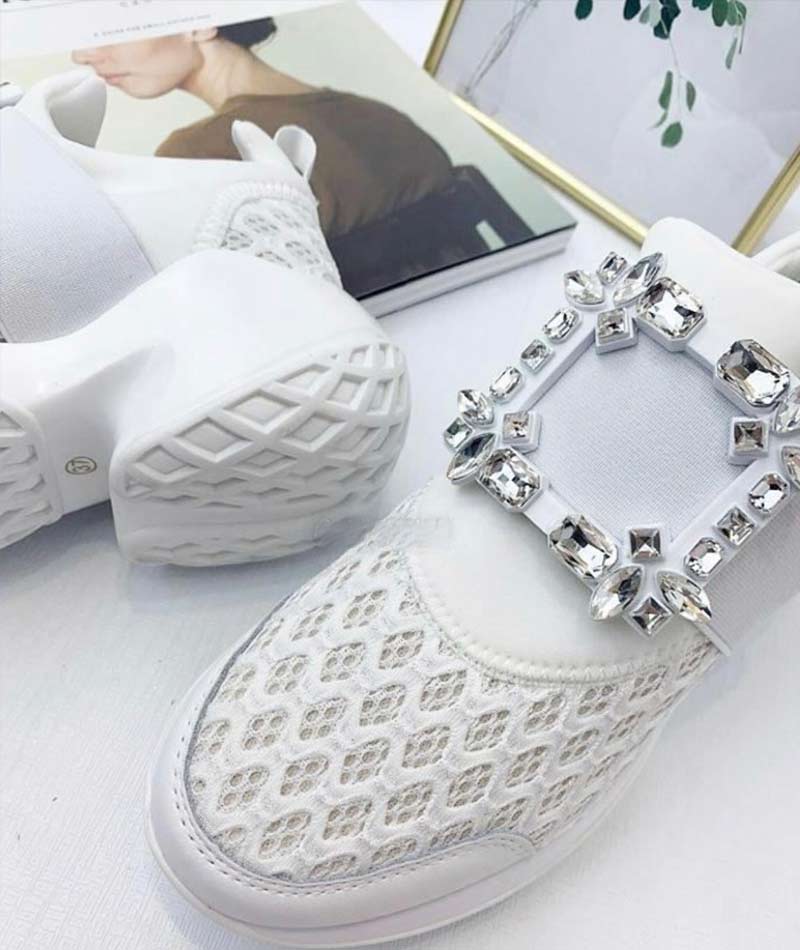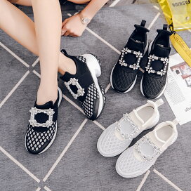 《楽天1位 シリーズ累計10万足》 ロゴ有り ビジュー スニーカー ブランド レディース きれいめ えーあい キラキラ 厚底 軽量 メッシュ エナメル シルバー 黒 白 おしゃれ かわいい 韓国 靴 シューズ スリッポン ダッドスニーカー 痛くない 歩きやすい 疲れない 上品 滑りに