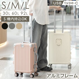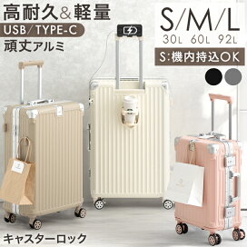 高耐久 アルミ キャリーケース [ Sサイズ 機内持ち込み OK ] [ Mサイズ ] [ Lサイズ ] 多機能 充電 USB type-c カップホルダー 1泊 2泊 3泊 5〜7泊 2泊3日 ストッパー付 キャリーケース キャリーバッグ スーツケース 軽量 旅行 出張