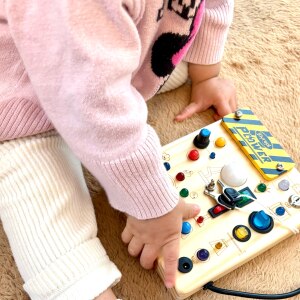ビジーボード 1歳 Joyreal モンテッソーリ ビジーボード 食品衛生法試験合格 モンテッソーリ知育玩具 19個LEDライト 一歳誕生日プレゼント 3歳 男の子 プレゼント 木のおもちゃ モンテッソーリ おもちゃ 0歳 1歳 2歳 3歳 早期開発 指先の知育 出産祝い クリスマス プレゼント