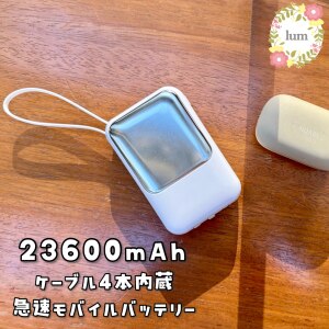 大容量23600mAhの急速充電が叶うケーブル内蔵モバイルバッテリー、 大容量なのに203gと軽量なので、持ち歩きも楽ちんです🥰 充電残量が表示されるのも分かりやすくてよかったです。 飛行機に乗る時にも持ち込み可能✈️ 懐中電灯代わりにもなるライト機能付きです。 普段のお出かけはもちろん、連休の旅行や帰省、遠征などにも忘れずにね❣️
