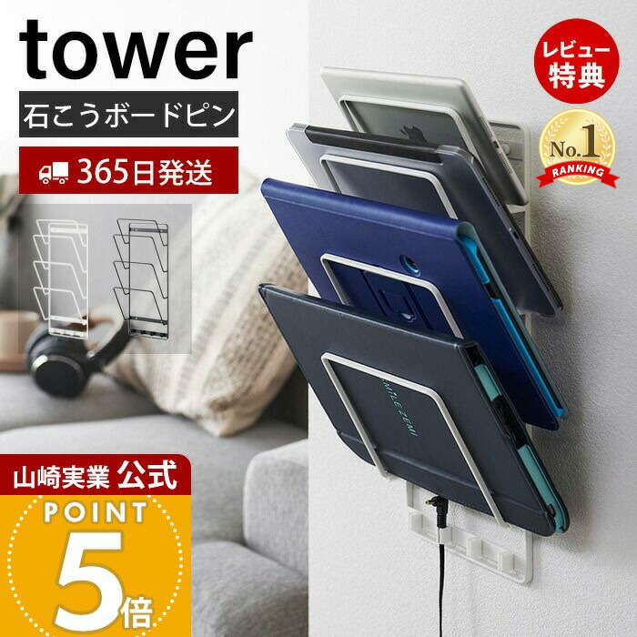山崎実業 石こうボード壁対応ウォールタブレットホルダー 4段 タワー tower 公式 タブレット収納 ノートパソコン収納 ブックスタンド 壁面収納 子供部屋 充電コードホルダー ヤマソロ