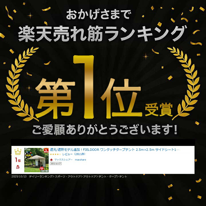 【楽天1位】遮光/遮熱モデル追加!FIELDOOR ワンタッチタープテント 2.5m×2.5m サイドシート1枚付 横幕セット 頑丈 スチール テント タープ 250 ワンタッチテント 大型 簡単 UVカット 撥水 日よけ プール イベント アウトドア キャンプ BBQ 1年保証 ★[送料無料]