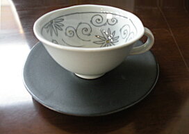 【砥部焼】長戸純子作 和紙染えんどうまめカップ&ソーサー【陶彩窯】陶器 焼物 コーヒーカップ
