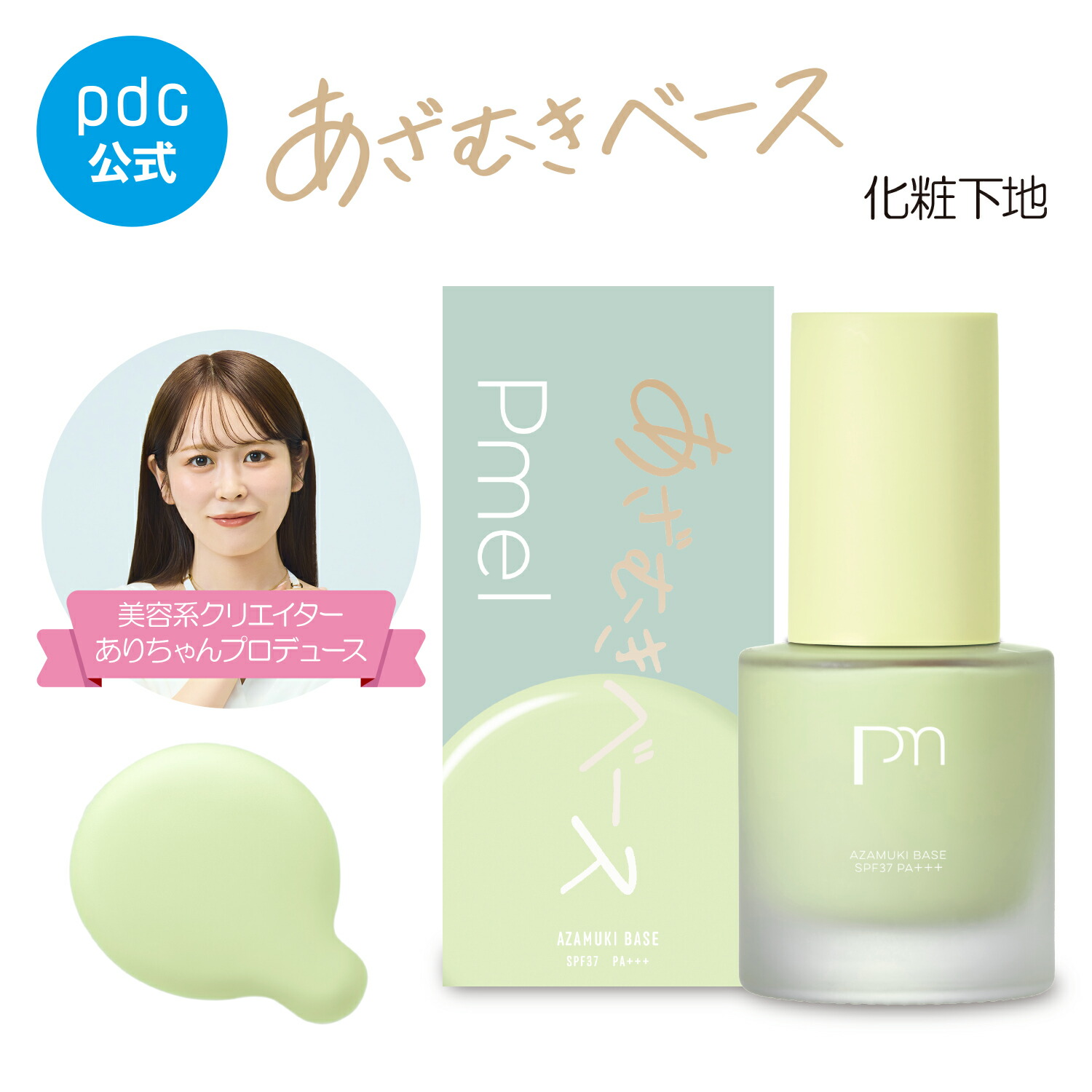 11/20発売 ありちゃんさんプロデュースのあざむきベースから、グリーンが登場です。 白浮きせずに、顔の赤みや色ムラを整えてくれる絶妙グリーンです。