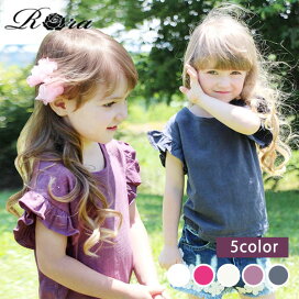 子供服Rora ローイン 花柄tシャツ 半袖 カットソー トップス tシャツ 女の子 子供服 キッズ キッズ服 花柄 リボン 可愛い 肩フリル フリル 大人っぽい 姉妹 お揃い 可愛い 春 夏 ピンク 140cm 130cm 120cm 110cm 100cm 90cm
