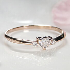 【受注生産】ハートシェイプ ダイヤモンドリング 4月 誕生石 10金 ピンクゴールド ピンキーリング 10k K10 ダイヤリング 指輪レディース 女性用 誕生日プレゼント 妻 母 激安 金属アレルギー 安心 結婚式 お呼ばれ アクセサリー
