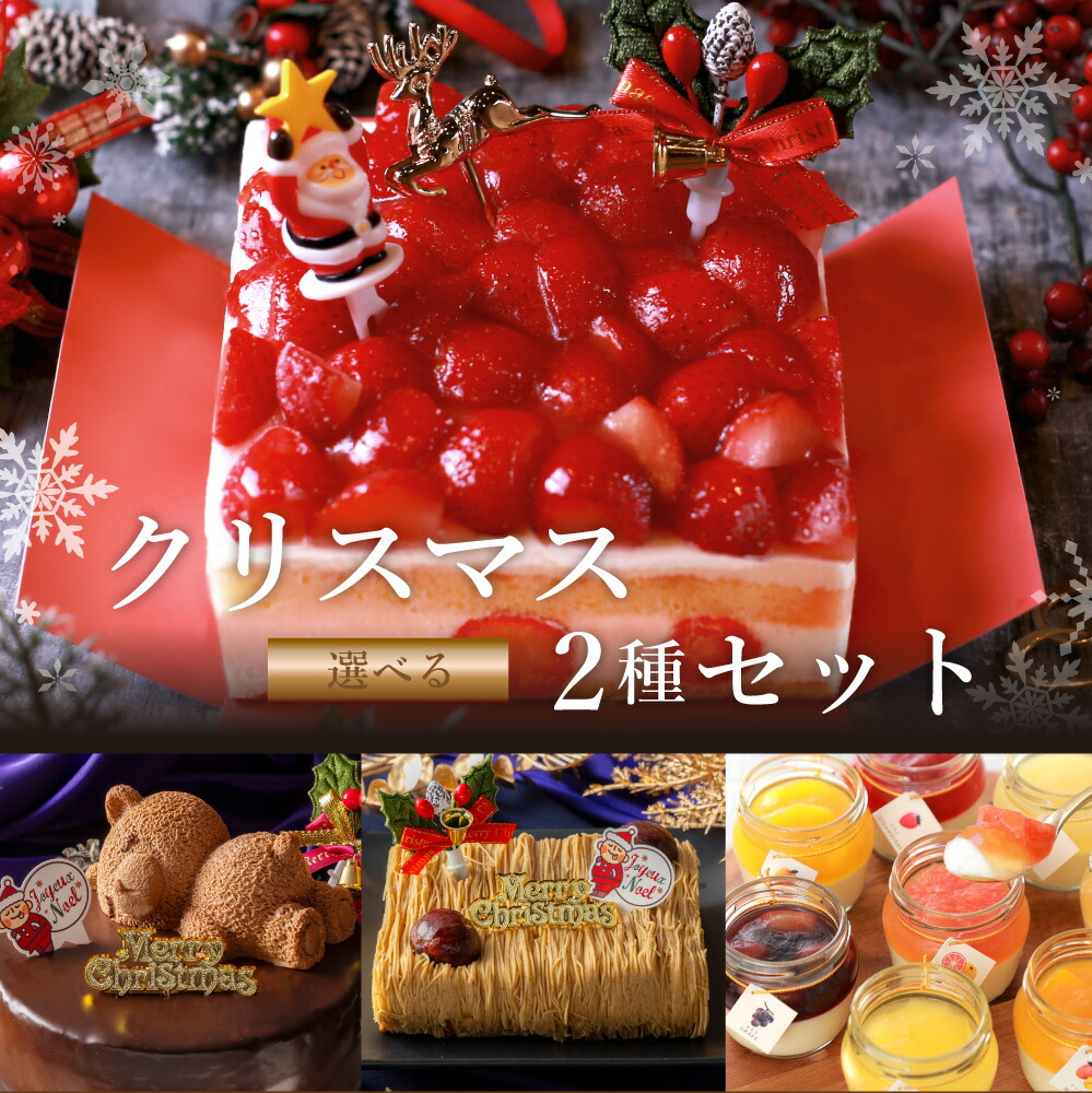 \⭐️4,4! 選べるクリスマススイーツの2種セット🎄/ ◇苺のケーキ+くまちゃんのザッハトルテ、和栗のモンブラン、彩果の恵みチーズケーキ(6個セット)が選べる♡ ◇苺のケーキは、甘さ控えめないちごのコンポートがたっぷり❤️ミルキークリームとの相性バッチリ! ◇かわいいくまちゃんのチョコムースが乗ったザッハトルテはお子様はもちろん、大人だって心躍ります🎶かわいいだけではなく、ガナッシュチョコやチョコムース、チョコスポンジ、アプリコットジャム、グラサージュチョコが7層になった濃厚な美味しさ❤️ ◇和栗のモンブランは、和栗クリームにティラミス、今話題の生羊羹も加わった新感覚スイーツ☆ ◇彩果の恵みは、チーズケーキとゼリーが一緒になった、見た目もかわいい♡体にも嬉しい!低カロリースイーツ🎄6個も入っているので、みんなで楽しめますね♡