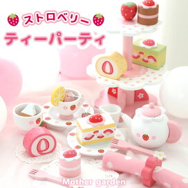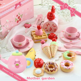 おままごとセット 木製おもちゃ 野いちご スウィートカフェリボン 《ピンク》 マザーガーデン おままごと 食材 木製 ままごとセット 知育玩具 スイーツ ティーセット 4歳 3歳 女の子 小学生 学童 誕生日 プレゼント