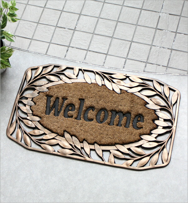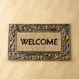 玄関マット 屋外 おしゃれ 屋外用玄関マット ココヤシ コイヤーマット ココマット 玄関マット ガーデンマット ラバーマット 玄関マット ゴムマット モダン 北欧 アジアン アンティーク風 Welcome ウェルカムエントランスマット F