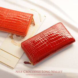 クロコダイル 長財布 シャイニング加工 センター取り 一枚革 真鍮 ラウンドファスナー バイカラー//レディース財布 婦人財布 ワニ革 安心 保証書 付き 春 春財布 ギフト プレゼント 4FA (3116r)