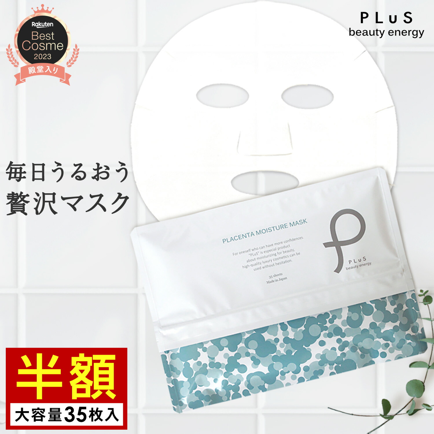 期間限定【半額セール】シートマスク パック フェイスパック シートパック フェイスマスク 顔パック 大容量 美容 日本製 デイリー メンズにも ランキング プレゼント[PLuS / プリュ プラセンタ モイスチュアマスク 35枚入 ] ZZ プリュ公式