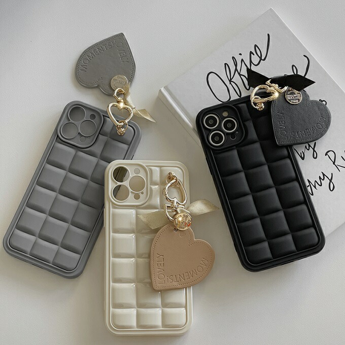 キルティング🔲iPhoneケース💓 可愛いキルティング柄の スマホケースです✨ ハートのチャーム付き🩷