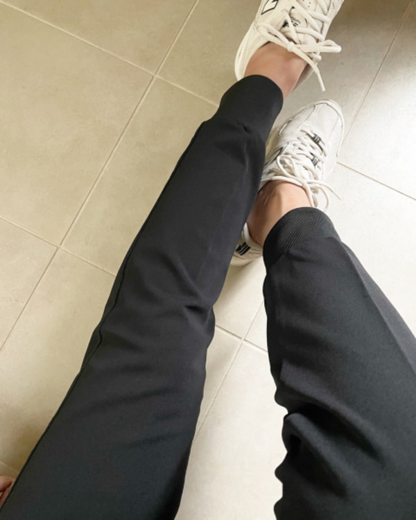 ニットジョーゼット生地のジョガーパンツ❤️ もう、めちゃくちゃラインが綺麗!!!!! 細身ながらゆとりもあり足を綺麗に見せてくれるジョガーパンツです♩ ニットジョーゼットはモチっとしていて、見た目は綺麗めながら、履き心地はとっても楽ちん🙌🏻💕 後ろスリットもお洒落です\(//∇//)\ カジュアルから綺麗めまで着回したいな〜!✨
