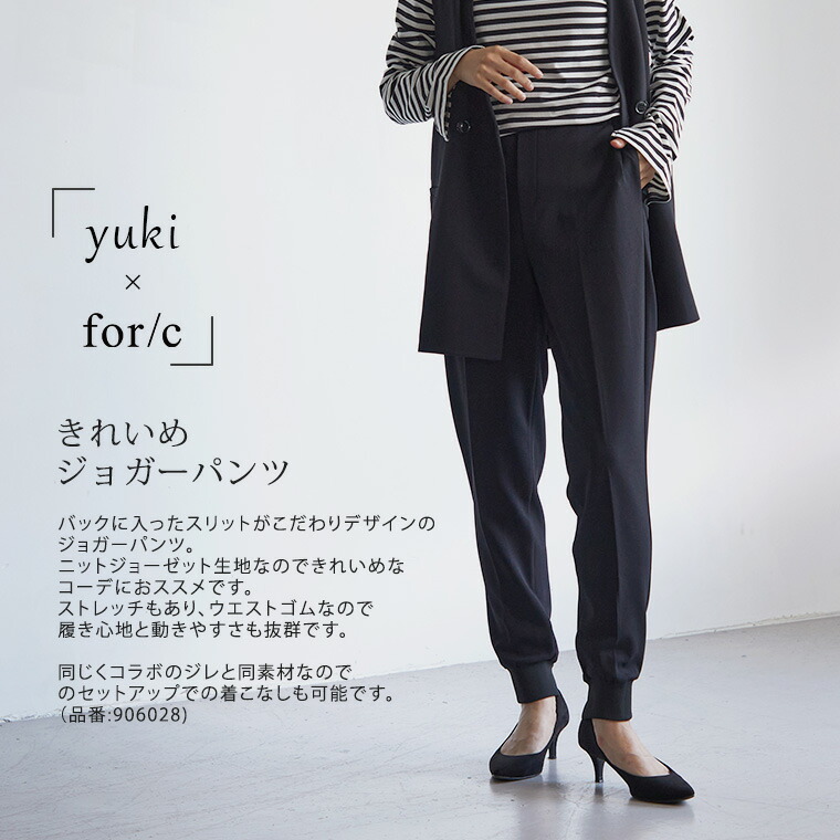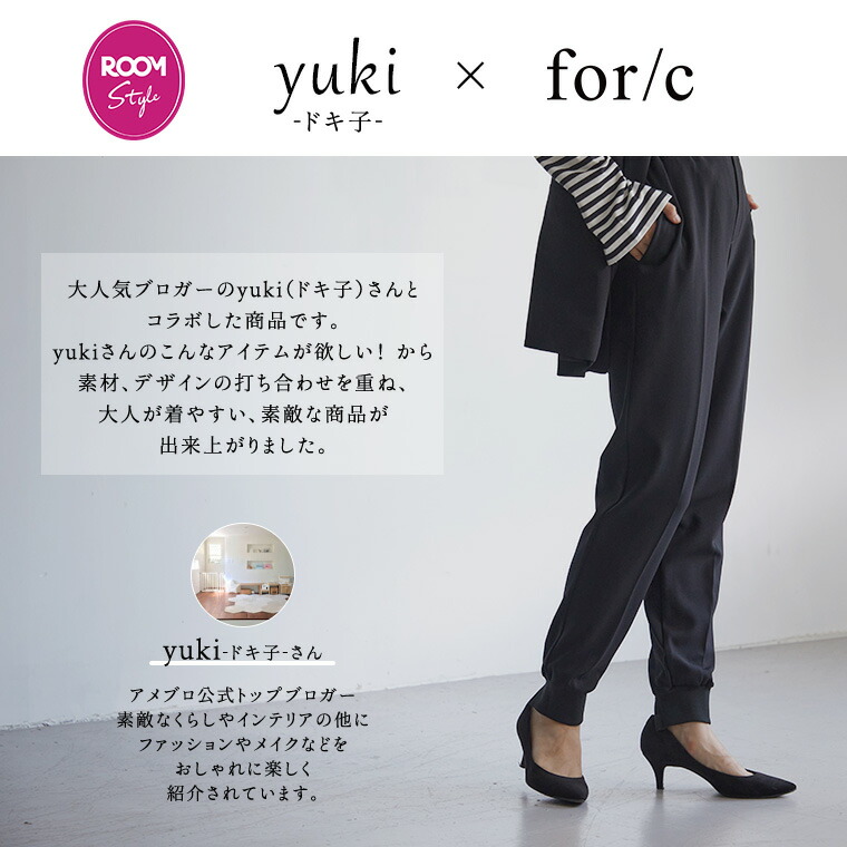 【マラソン 最大60%OFFクーポン 11日9:59迄】【yuki×for/cコラボ】きれいめ ジョガーパンツ 裾スリット パンツ 低身長 レディース リサイクルポリエステル 春 夏 秋 冬 S M L LLサイズ 洗濯可 for/c フォーシー ドキ子 コラボ 楽天room