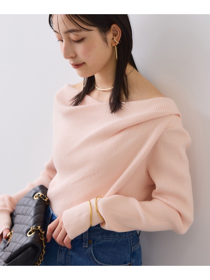 もちもちニットのドレープトップス🩷オフショルにもなるー!ピンクかわいいー!