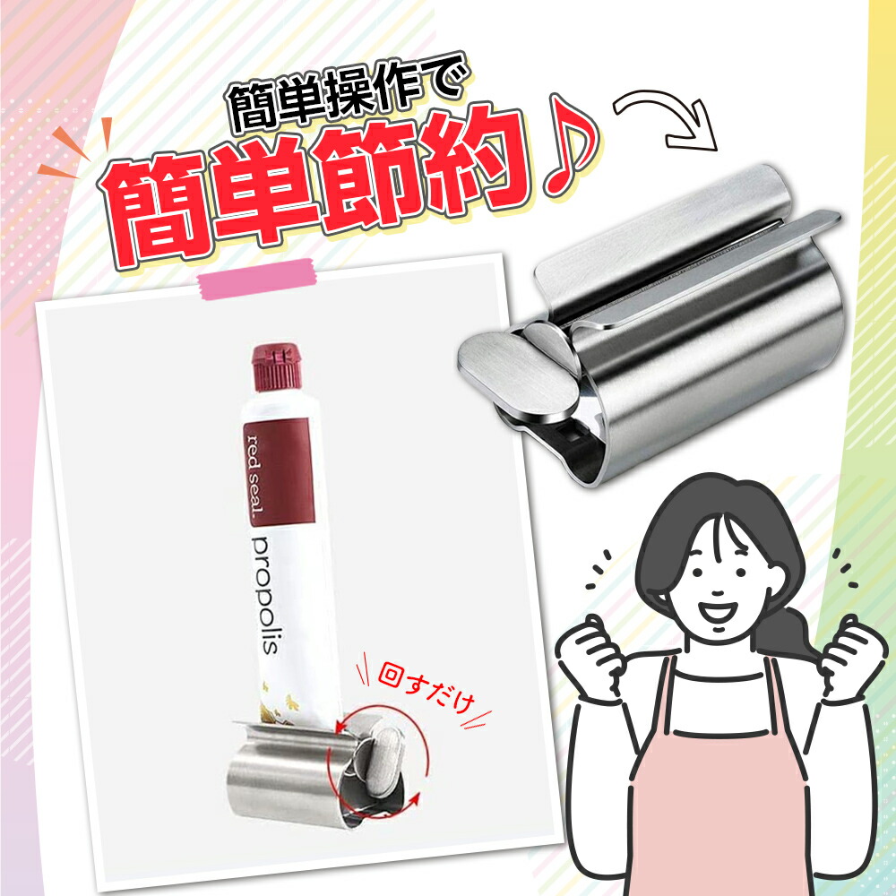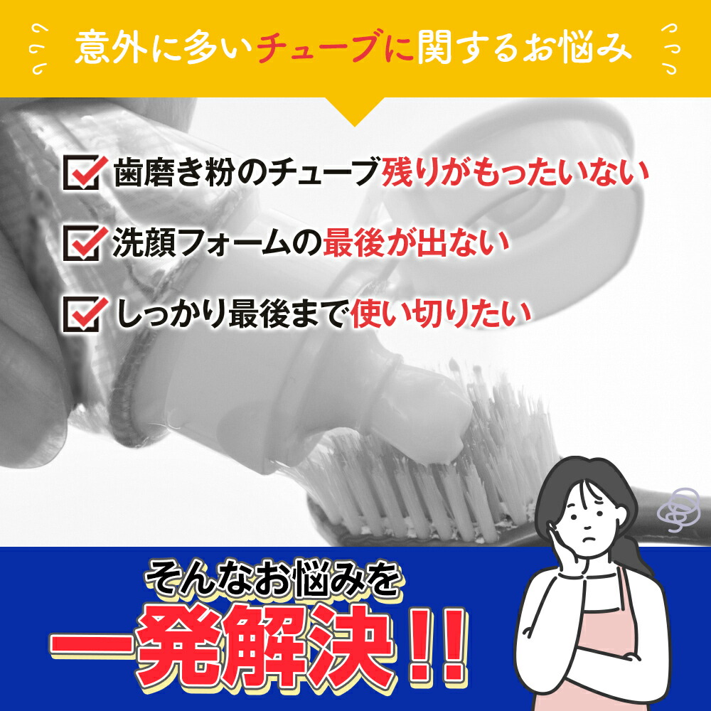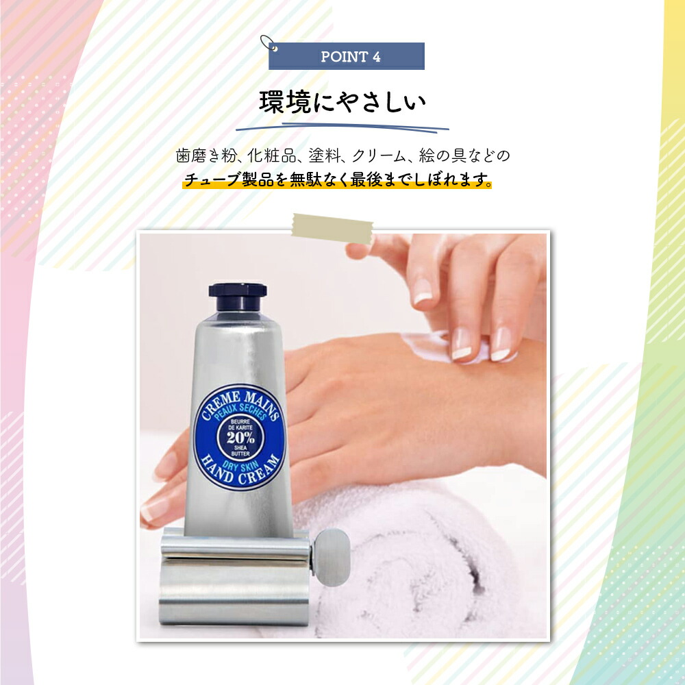 【チューブ絞り】 想像以上に便利で感動しました 残り少ない歯磨き粉やハンドクリームなどを くるくるまいで絞りやすく出来ます スタンドでおいて置けるので便利! 見た目もおしゃれで買ってよかったです