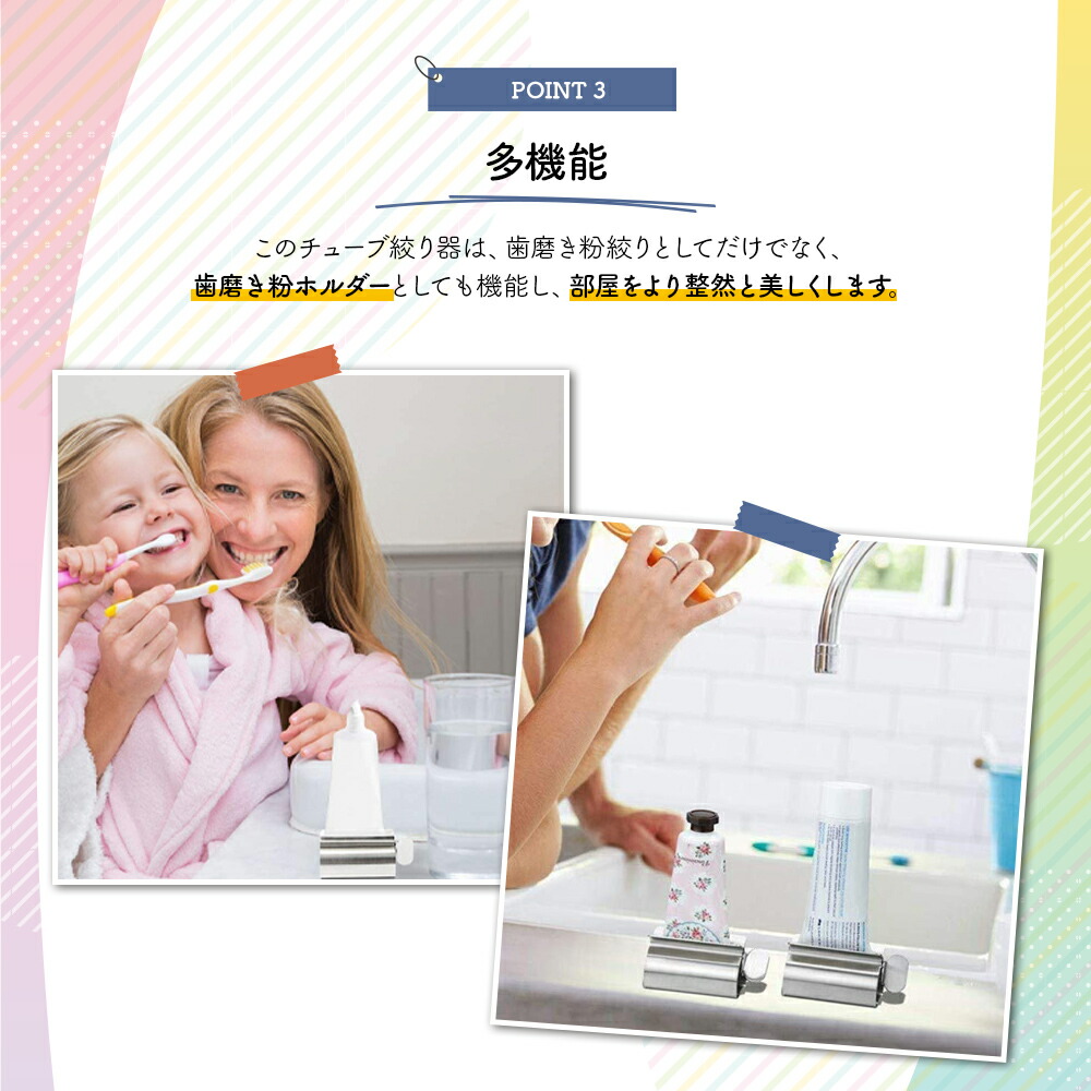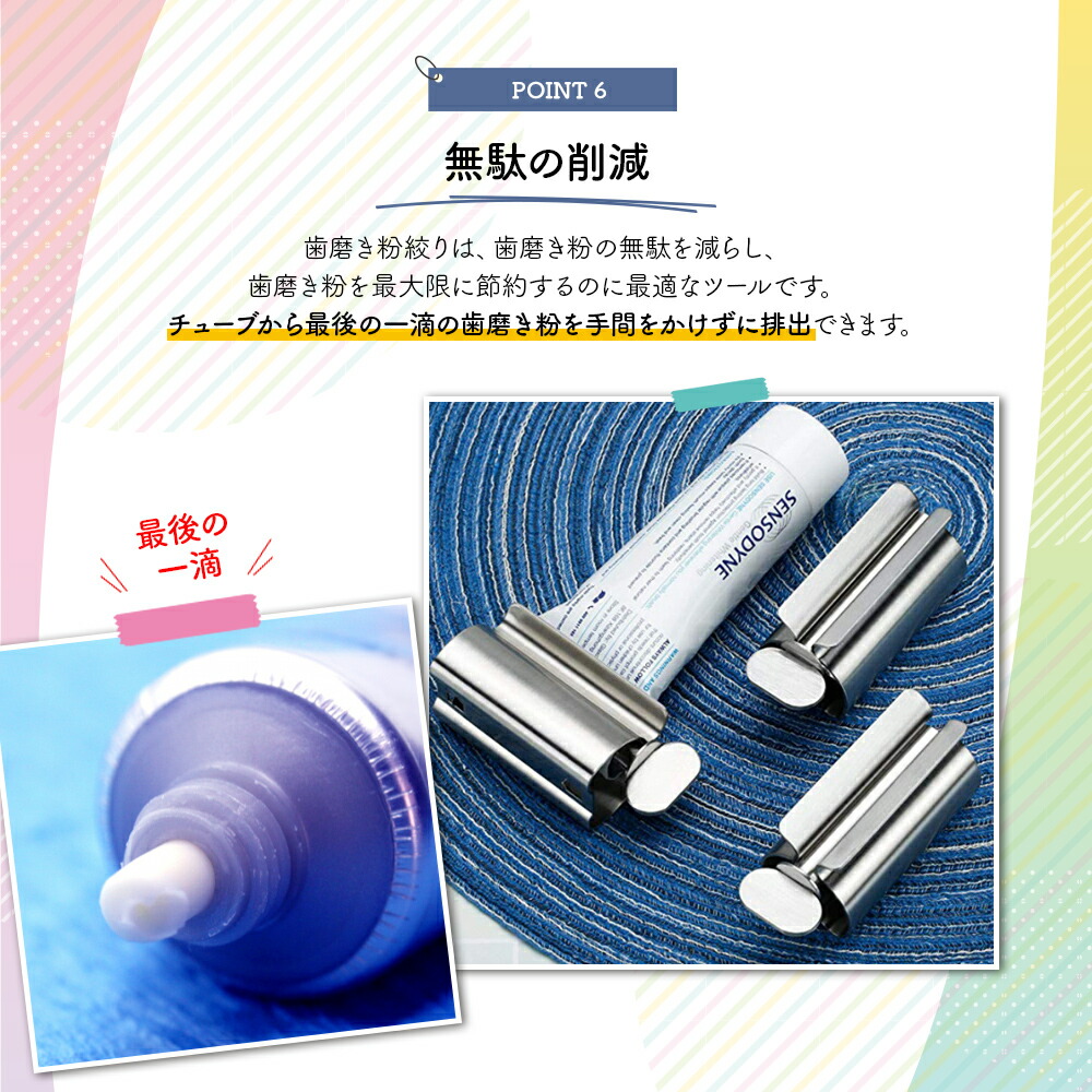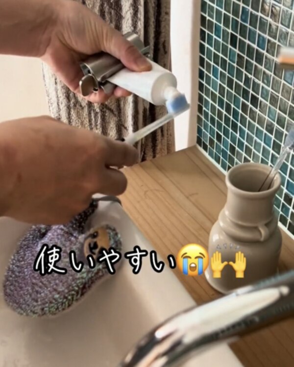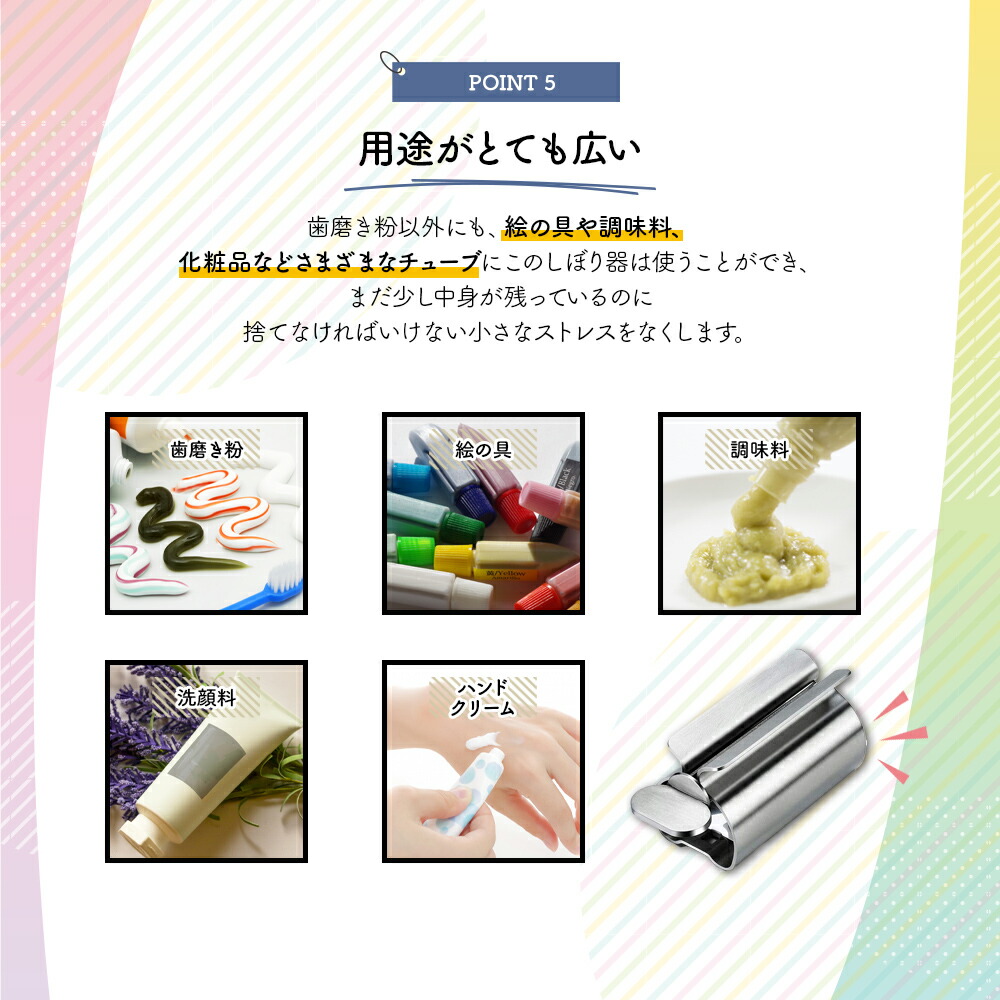 【チューブ絞り】 想像以上に便利で感動しました 残り少ない歯磨き粉やハンドクリームなどを くるくるまいで絞りやすく出来ます スタンドでおいて置けるので便利! 見た目もおしゃれで買ってよかったです