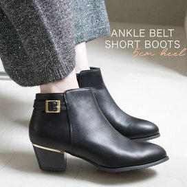 サイズ交換無料★アンクルベルトショートブーツ 5センチヒール レディース 秋冬 ブラック ブラウン チェック ツイード 22.5 25.0 ポインテッドトゥ 低反発 美脚 スエード 太ヒール 黒 バイカラー ルリアンプラス