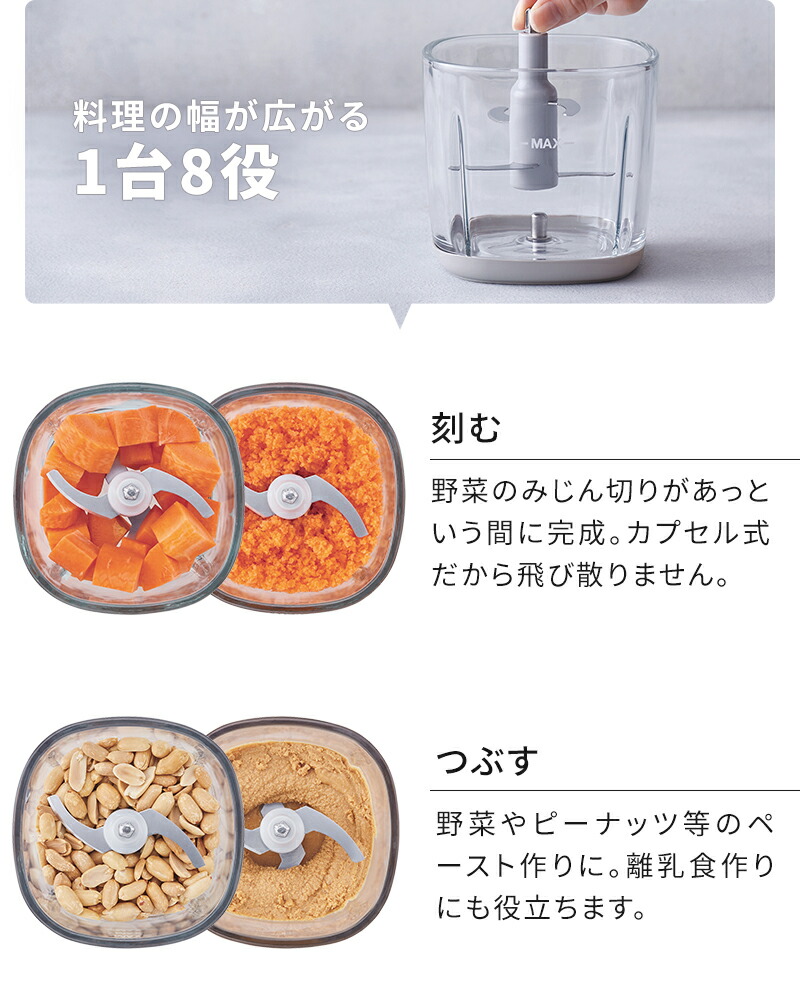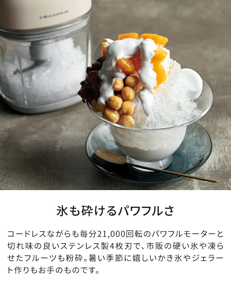 ◆楽天1位◆【当店限定豪華6大特典】フードプロセッサー レコルト コードレス カプセルカッターボンヌ ブレンダー ミキサー ジェラート recolte 電動 大根おろし 氷も砕ける 小型 フードカッター 離乳食 スムージー 充電式 みじん切り 泡立て ガラス容器 500ml ギフト RCP-7