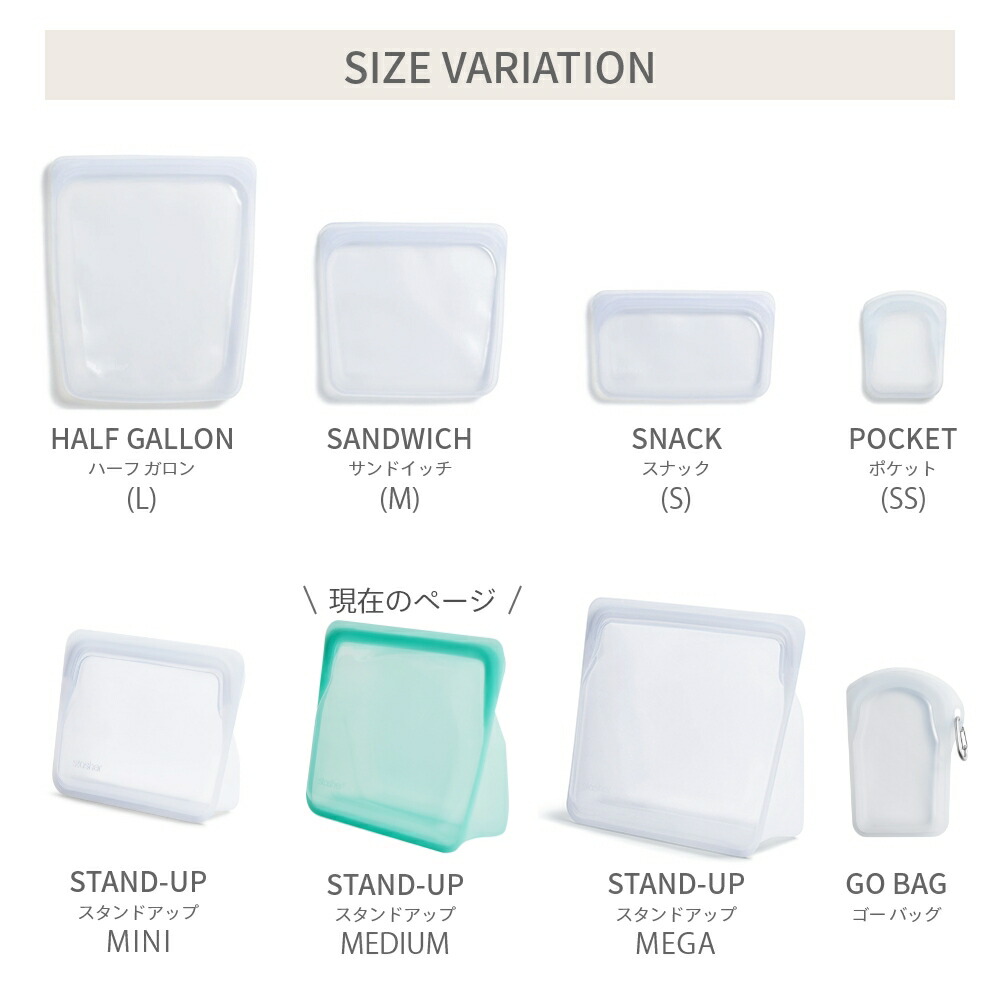 【レビュー特典】stasher スタッシャー シリコン製保存容器 マチ付き スタンドアップ ミディアム 19×21.5×6.5cm 耐熱 耐冷 ピュアシリコン使用 保存袋 ジップロック STAND-UP 湯せん お弁当 エコ活 脱プラ プラスチックフリー 小物入れ 半透明 オシャレ