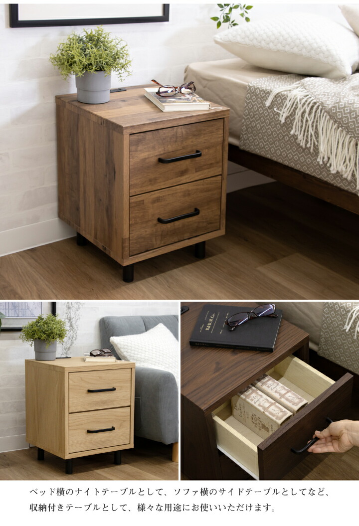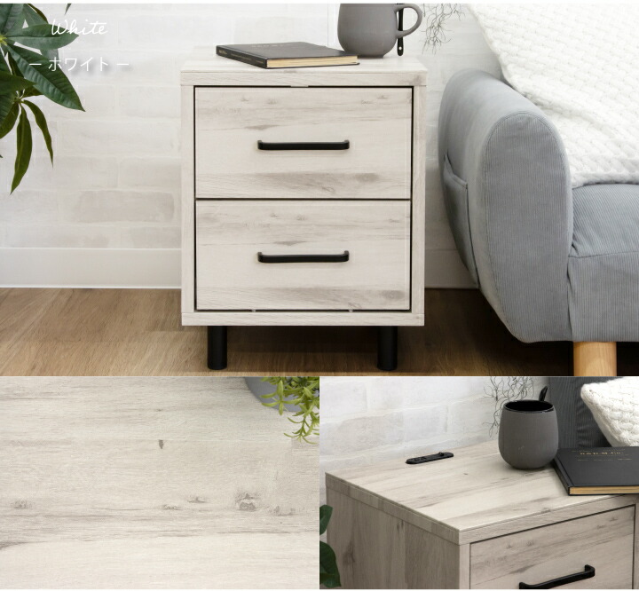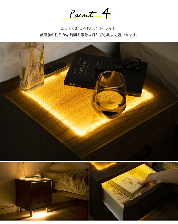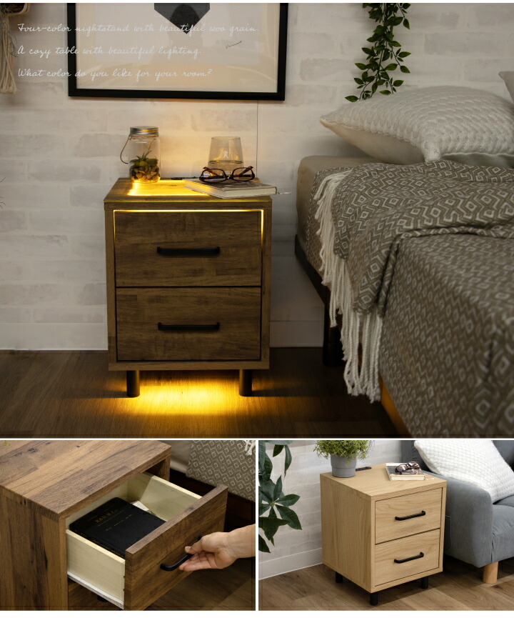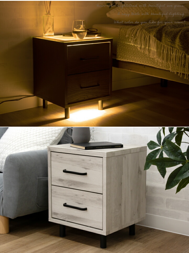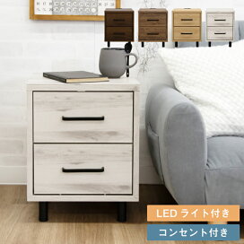 ナイトテーブル サイドテーブル ナイトチェスト フロアライト 照明付き ミニチェスト / サイドチェスト 幅36 引き出し 2段 コンセント付き 棚 収納 北欧 シンプル モダン sanjp-0762