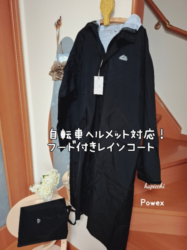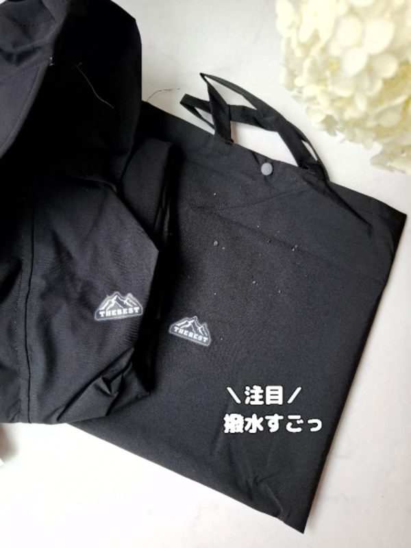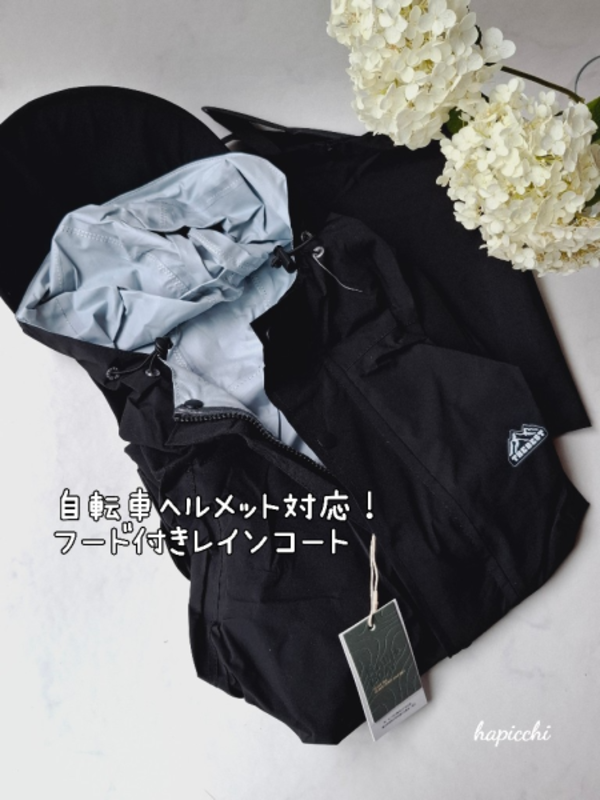 自転車ヘルメット対応ユニセックスのレインコート☔ [レインコート レインポンチョ15000m耐水圧] 娘の自転車通学(駅まで自転車の時)や万博で☔で困ったのでしっかり家族分対策しとく! たまたま、今朝庭で咲いたアナベルを飾ってたら袋に水滴落ちた!撥水がすごかったので激写👀📷️✨ 伝わりますように🤭 Mサイズ 157.5㎝ブラック着用 袖口はマジックテープ付きで調節可能 大きめだったけどいい感じ😊 🏠shop→