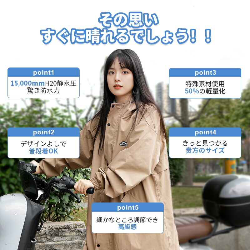 【期間限定10%OFFクーポン利用可&P3倍UP】レインコート レインポンチョ15000m耐水圧 自転車ヘルメット対応 メンズ レディース 軽量 フード付き 防水 透湿 通勤 通学 おしゃれ ハイポンチョロング丈 カッパ 雨具 自転車用 男女兼用 綺麗 保育園の送迎