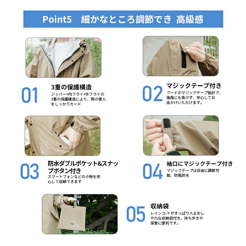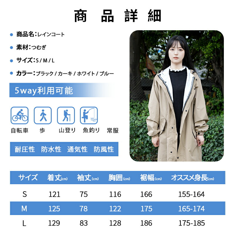 メンズ レディース 軽量 フード付き 防水 透湿 通勤 通学 おしゃれ ハイポンチョロング丈 カッパ 雨具 自転車用 男女兼用 綺麗 保育園の送迎 ギフト