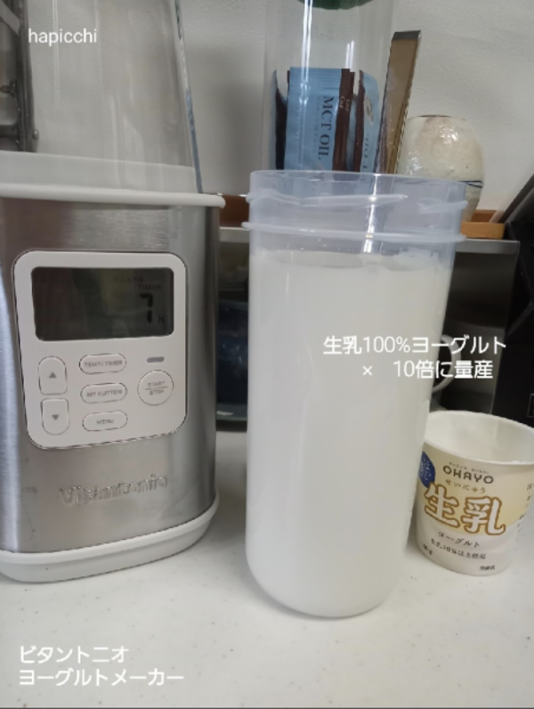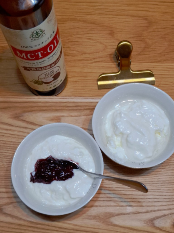 【ビタントニオ VYG60W ヨーグルトメーカー 】夏の間お休みしていたヨーグルト作り再開😊 毎朝ヨーグルト+MCT オイルでいただいてます。夫はブルーベリージャムを。 生乳100%の無添加ヨーグルトにこだわりがあるので、自分で作ったら10倍の量になってお得🙌🙌 🏡shop→