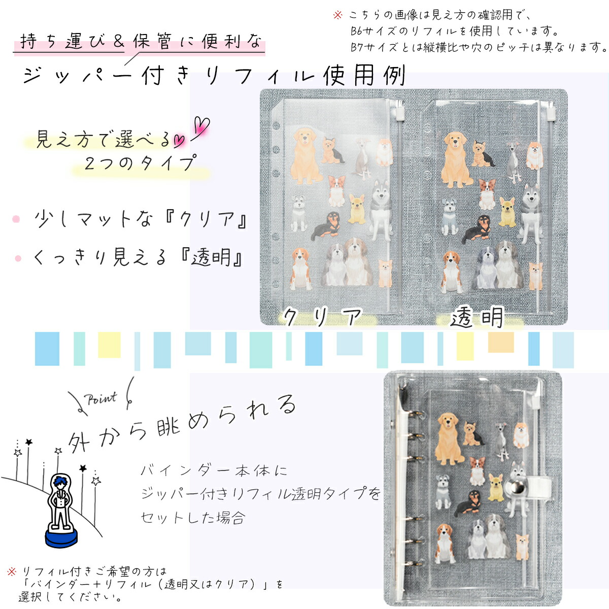 クリアバインダー 日本製 シール帳 バインダー 透明 6穴 リフィル クリア アクスタケース 手帳型 アクスタ 収納 ファイル 推し活 ケース 推し活グッズ 持ち運び オタ活グッズ トレカ トレカ収納 かわいい A5 B6 B7 _フラップ付きB7_