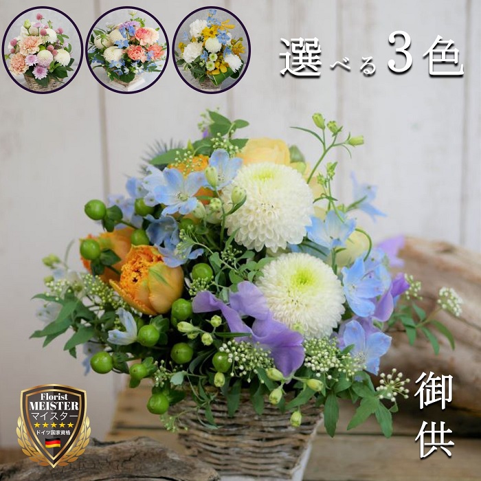 お供え 花 初盆 お盆 お供え花 法事 四十九日 仏花 命日 仏事 法要 枕花 初七日 ペット 供え花 フラワー 花 上品 モダン フラワーギフト お悔やみ 一周忌 フラワーアレンジメント プレゼント 菊 3色 選べる【花匠美ブランド】