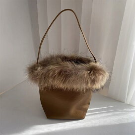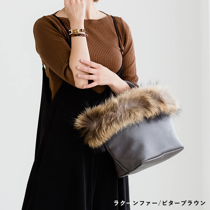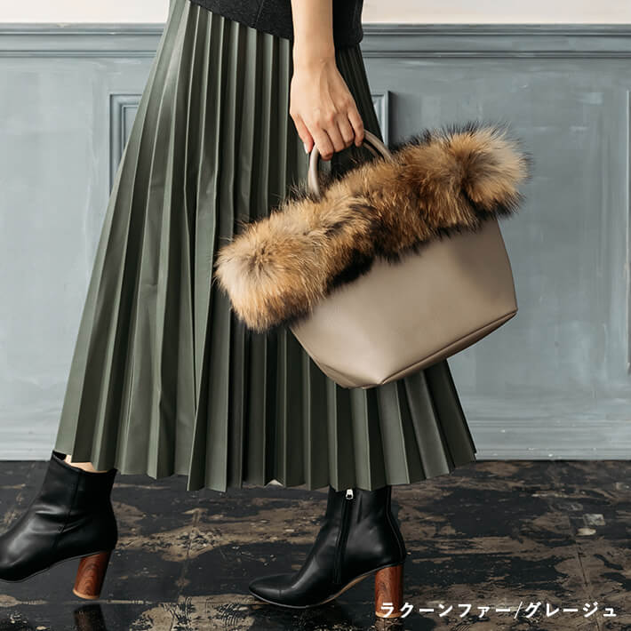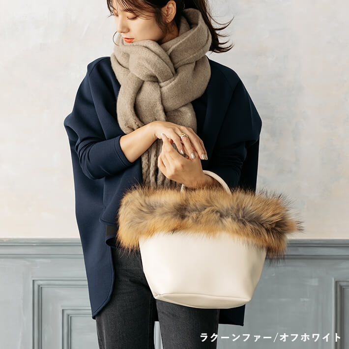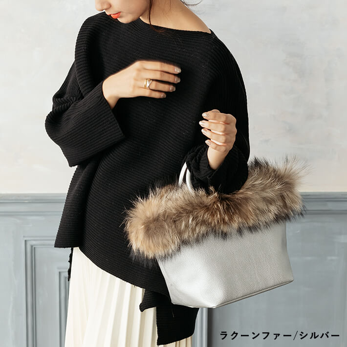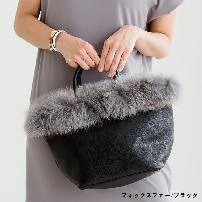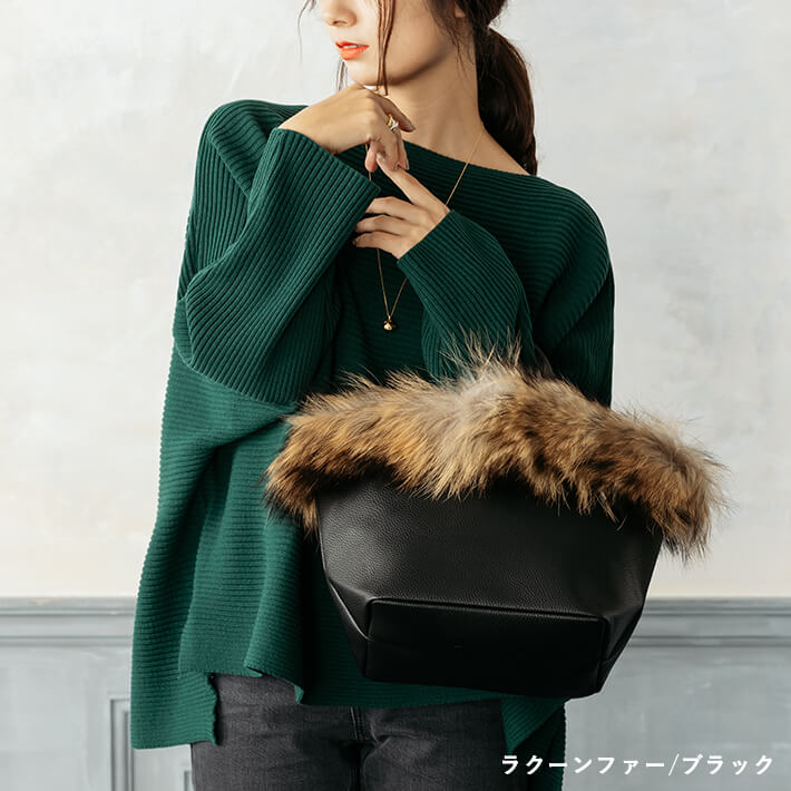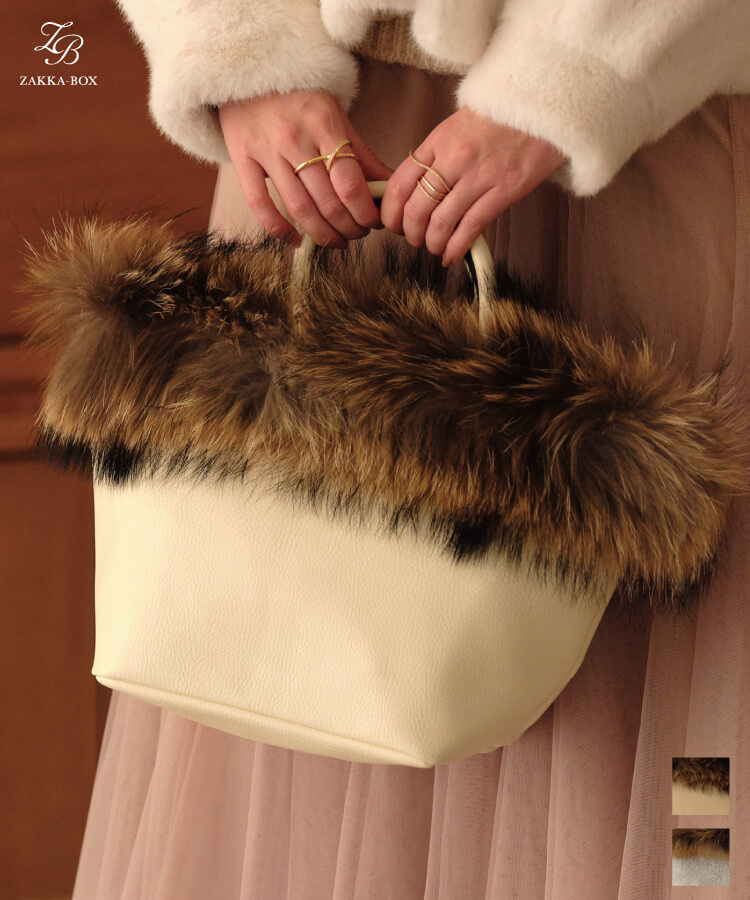 【5,000円(税別)ポッキリ!】ファー トートバッグ / フォックスファー ラクーンファー【送料無料】ファートート レディース バッグ ファーバッグ ラクーン リアルファー 舟形トート 舟形 トート ショルダーバッグ ブロガーさんご愛用