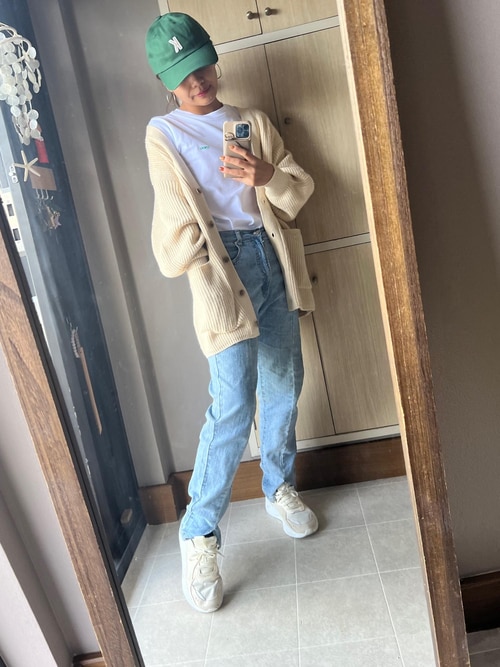 Tシャツもカーディガンもかなりイイ感じ!!! Tシャツ安くなりすぎていて、ネイビーも購入♫ カーディガンはポワン袖と、ポケットがグーなんです! スニーカーは歩きやすすぎるよ〜