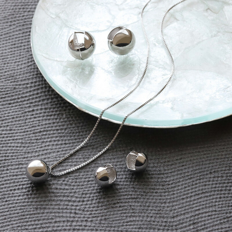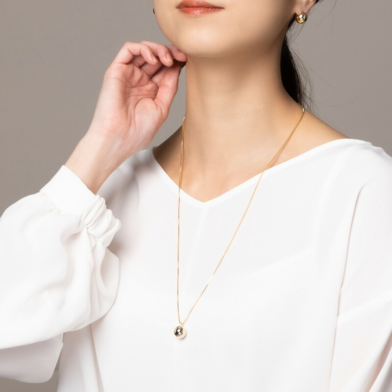 人気のボールピアスにネックレスがセットになったお得なセット!ピアスは3サイズから選べて、ネックレスは1サイズ展開。ピアスはキャッチ一体型でとにかく着脱がラクで良いです。ネックレスはミドルサイズで、さりげないアクセントに。アレルギー対応素材で、ピアスはぴたっと留まるタイプなのでマスクや衣服の着脱時にひっかりにくく、ついつい出番が多く、ヘビロテ中♥(アレルギー対応素材です)