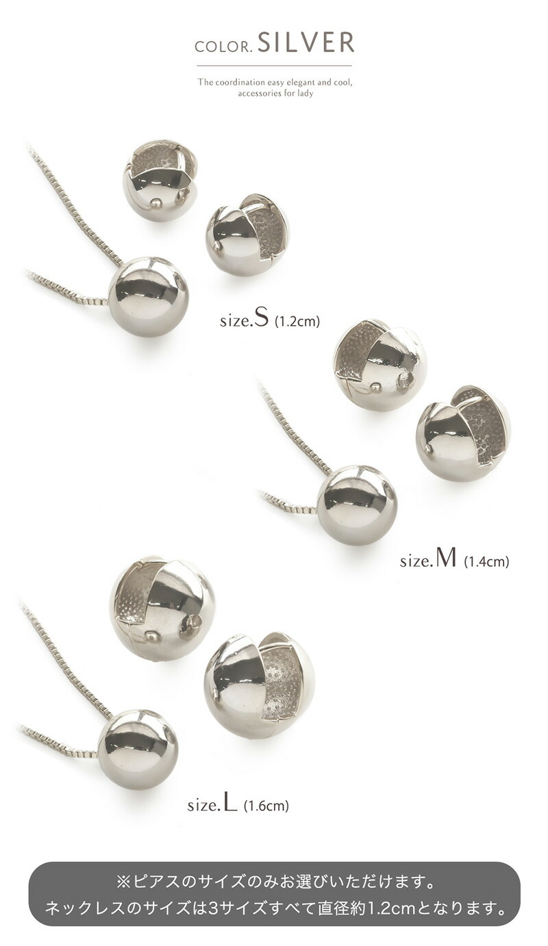 【枚数無制限!50%OFFクーポン配布中】 【メール便送料無料】 メタルボール ネックレス ピアス 2点 セット 金属アレルギー レディース ロング ベネチアンチェーン ワンタッチ式 フープピアス S M L 18Kコーティング ニッケルフリー 安心 シンプル 中折れ