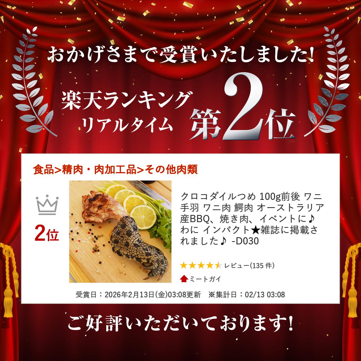 クロコダイルつめ 100g前後 ワニ手羽 ワニ肉 鰐肉 オーストラリア産 BBQ、焼き肉、イベントに♪ わに インパクト★雑誌に掲載されました♪ -D030