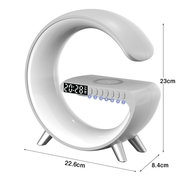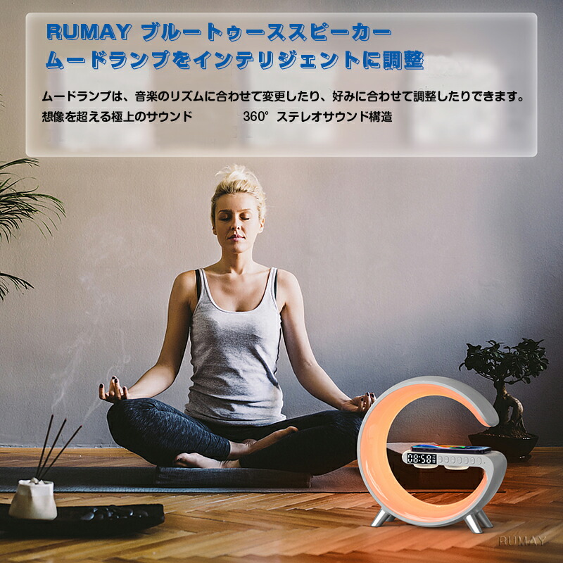 【レビュー特典】RUMAY 4in1 Bluetooth スピーカー ワイヤレス充電器 ブルートゥース 高音質 防塵防水スマート 目覚まし時計 ナイトライト 雰囲気ランプ インテリジェントLEDテーブルランプ 音楽同期 装飾用のアプリ制御 スピーカーポータブルスピーカー軽量